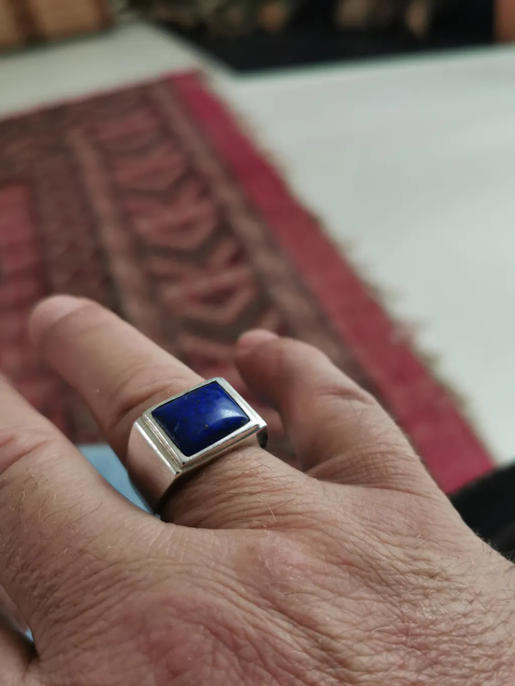 Chevalière rectangulaire en argent 925, faite à la main et avec une pierre bleue Lapis Lazuli.