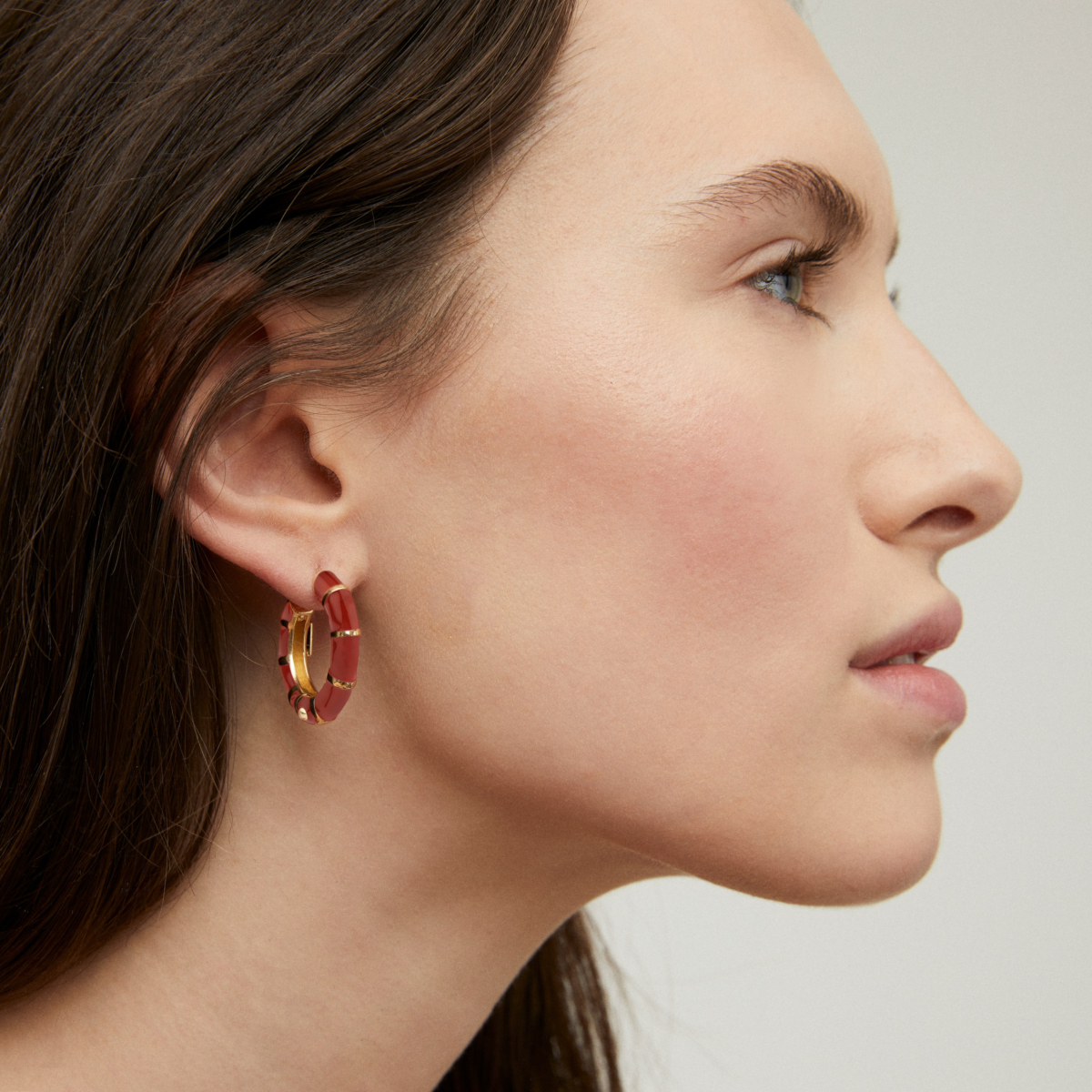 Un essentiel lumineux à porter seul ou en accumulation, incarnant parfaitement l’esprit des boucles d’oreilles Gas Bijoux créoles Bambou émail mini dorées.