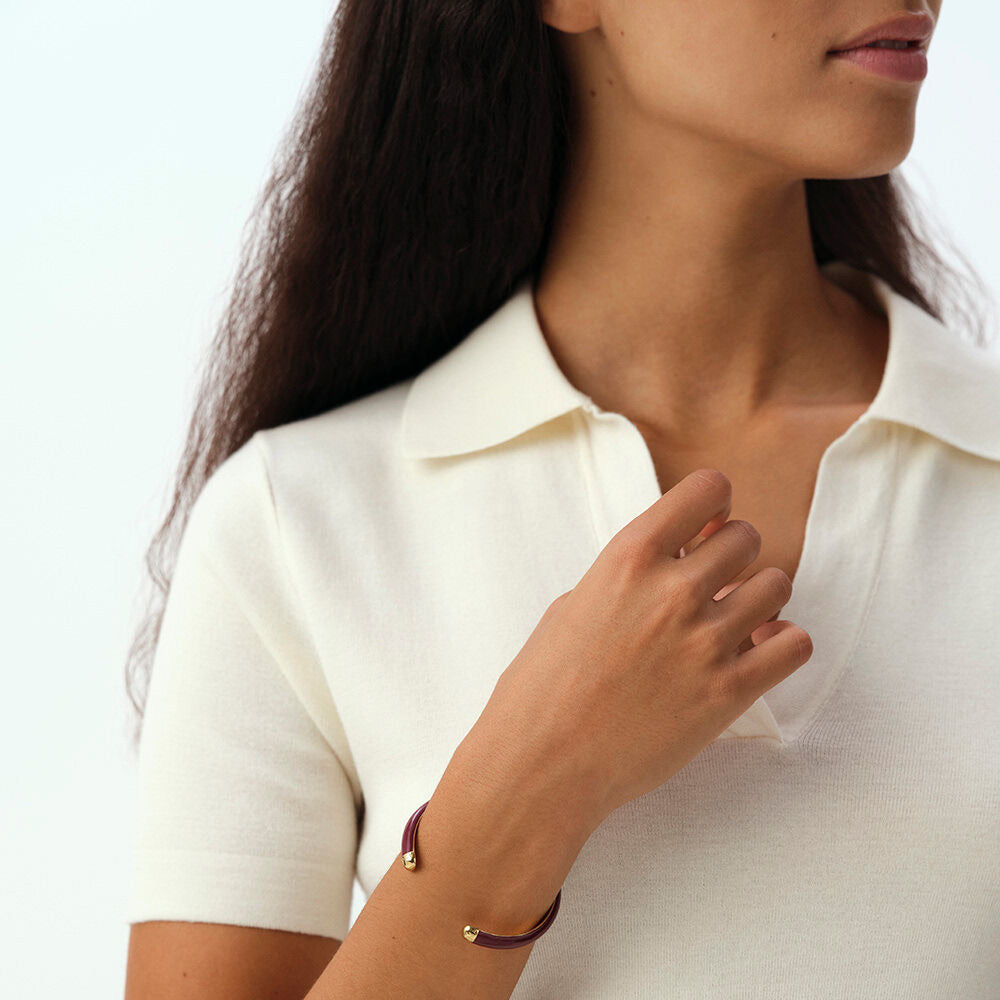 Un bracelet jonc en acier inoxydable émail couleur bordeaux, au design épuré et minimaliste.