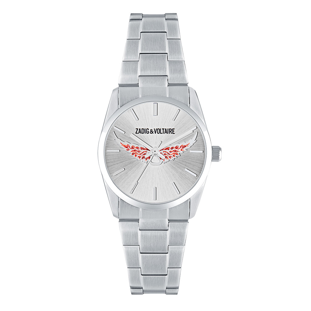 La montre Zadig & Voltaire ZVW1201 allie design audacieux et robustesse avec son bracelet en acier inoxydable et son étanchéité jusqu'à 50 mètres. Son fond de boîtier orné d’ailes rouges souligne l’identité forte de la marque, tandis que la précision de son mouvement garantit une fiabilité optimale au quotidien.