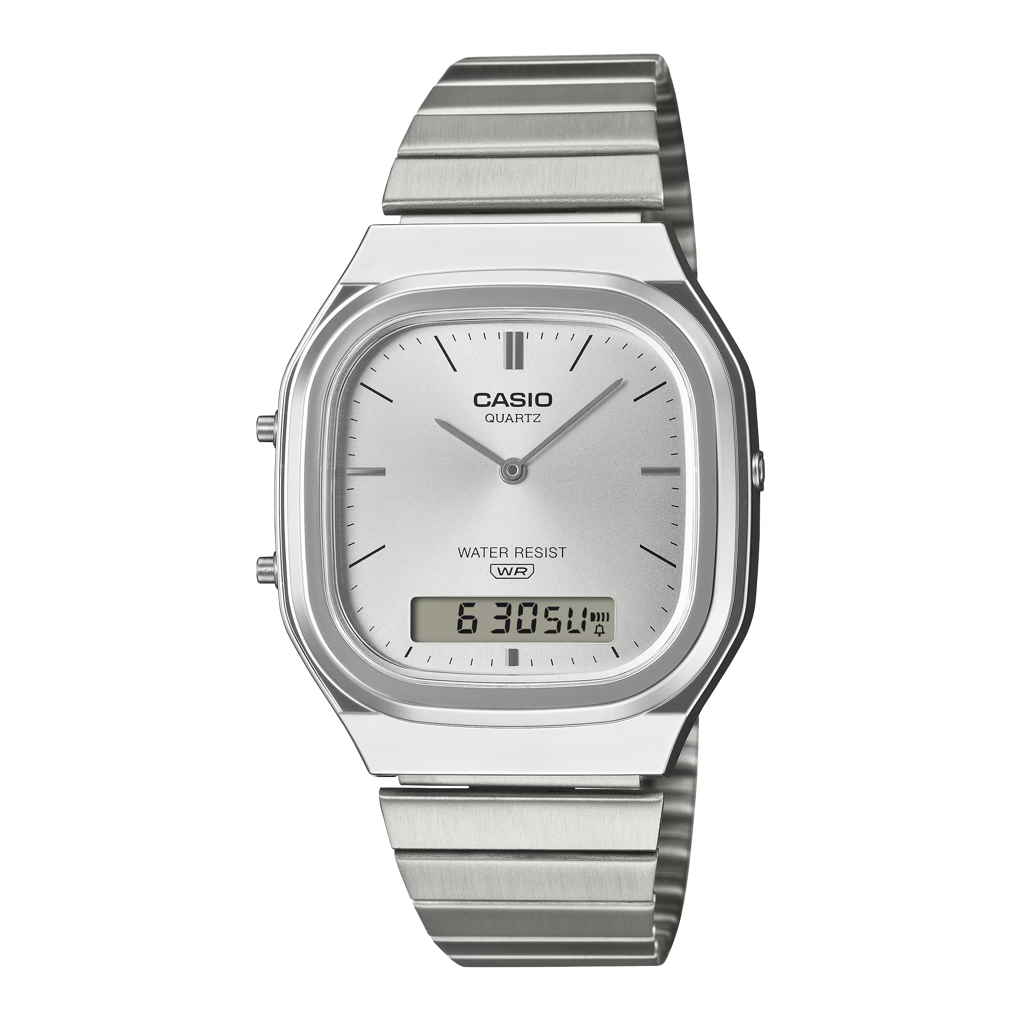 La Casio AQ-240E-7A, issue de la collection Edgy Collection, revisite le style rétro avec une touche moderne et élégante. Son double affichage analogique et digital lui confère un charme unique mêlant nostalgie et praticité. Le cadran légèrement rectangulaire, associé à un boîtier arrondi aux lignes métalliques, offre une silhouette raffinée et parfaitement équilibrée.