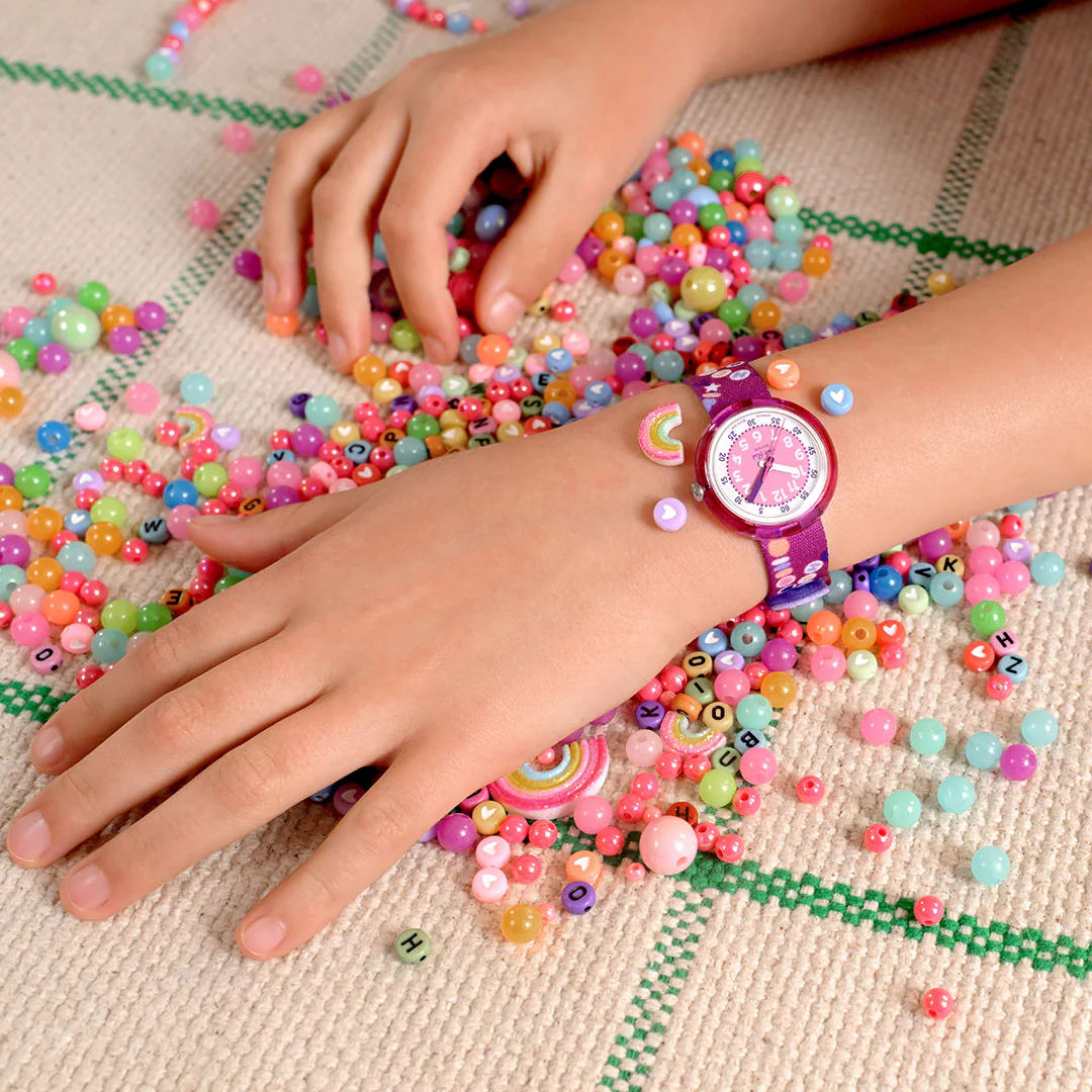 La Flik Flak BFF est la montre idéale pour célébrer l’amitié et aider les enfants à apprendre l’heure en s’amusant. Avec son design 100 % rose et son style doux et joyeux, elle plaira immédiatement aux petits qui aiment partager des moments avec leurs meilleurs amis.