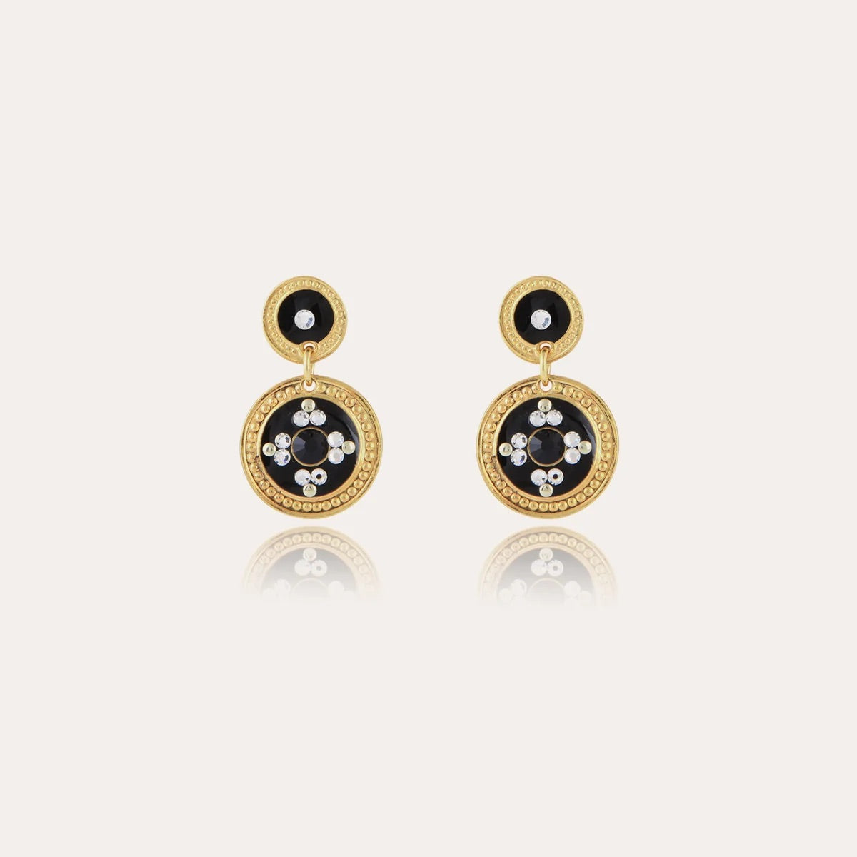 Ces boucles d’oreilles Gas Bijoux, recouvertes d’or fin, marient élégance et raffinement grâce à leur émail délicat et aux scintillants strass Swarovski. Un accessoire sophistiqué qui sublime vos tenues avec une touche de lumière précieuse.