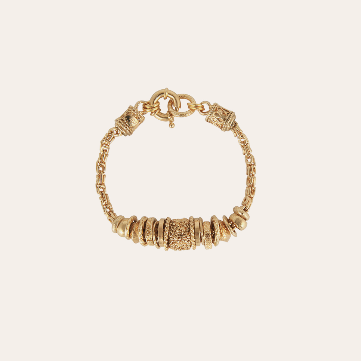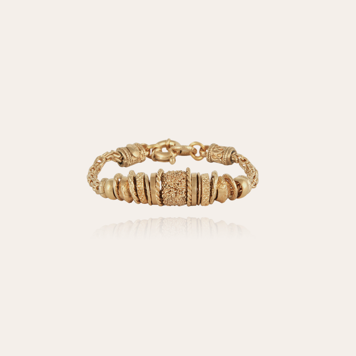Icône d’élégance au charme rétro, le Bracelet Marquise Chaine doré de Gas Bijoux séduit par son allure affirmée et son esprit vintage revisité. Composé d’une chaîne structurée, il se distingue par une accumulation d’anneaux dorés à l’or fin qui captent la lumière avec caractère. Un bijou de style, pensé pour sublimer le poignet au quotidien comme lors des occasions plus habillées.